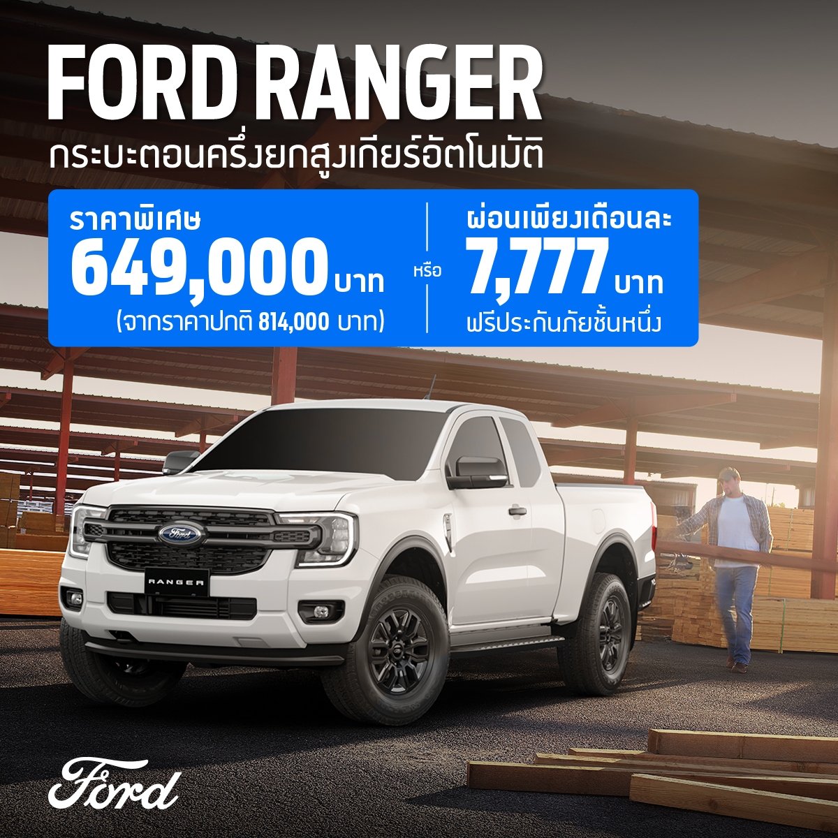 ฟอร์ด ประเทศไทย มอบข้อเสนอเร้าใจต่อเนื่องในช่วงฉลองครบรอบ 29 ปี สำหรับผู้ที่กำลังเลือกซื้อรถกระบะแบบตอนครึ่งเพื่อการเดินทางและใช้งานในชีวิตประจำวัน ด้วยแคมเปญสุดเร้าใจสำหรับรถฟอร์ด เรนเจอร์ XLS กระบะตอนครึ่งยกสูงใหม่ เกียร์อัตโนมัติ ราคาพิเศษ 649,000 บาท หรือเลือกผ่อนต่ำ 7,777 บาท นานถึง 84 เดือน ฟรีประกันภัยชั้นหนึ่งและโปรแกรม ฟอร์ด แคร์ สำหรับลูกค้าที่จองรถฟอร์ดระหว่างวันที่ 18 กรกฎาคม ถึง 30 กันยายน 2568 ที่โชว์รูมฟอร์ดทั่วประเทศ