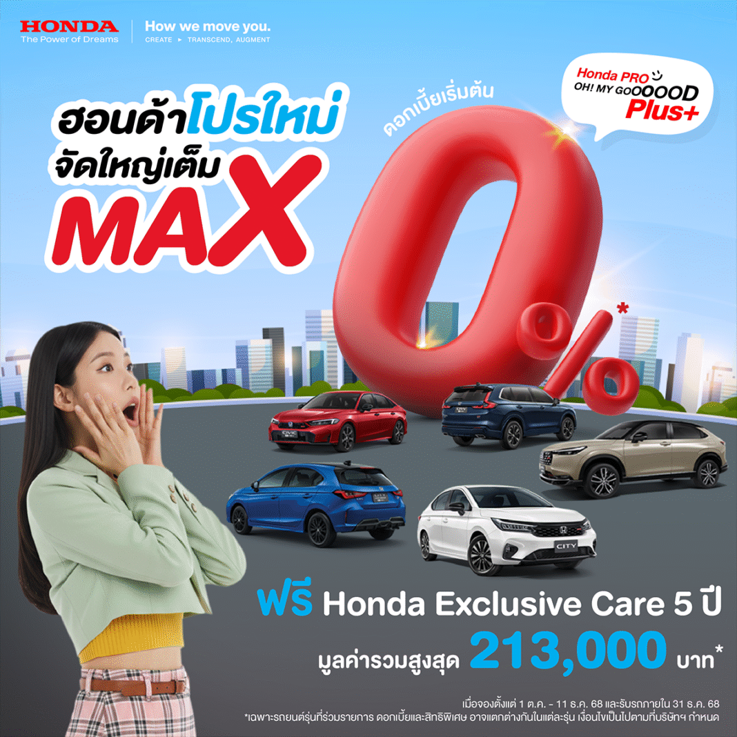 - ดอกเบี้ย 0% พร้อมฮอนด้า อัลติเมท แคร์