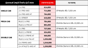ราคาขาย มิตซูบิชิ ไทรทัน รุ่นปี 2026