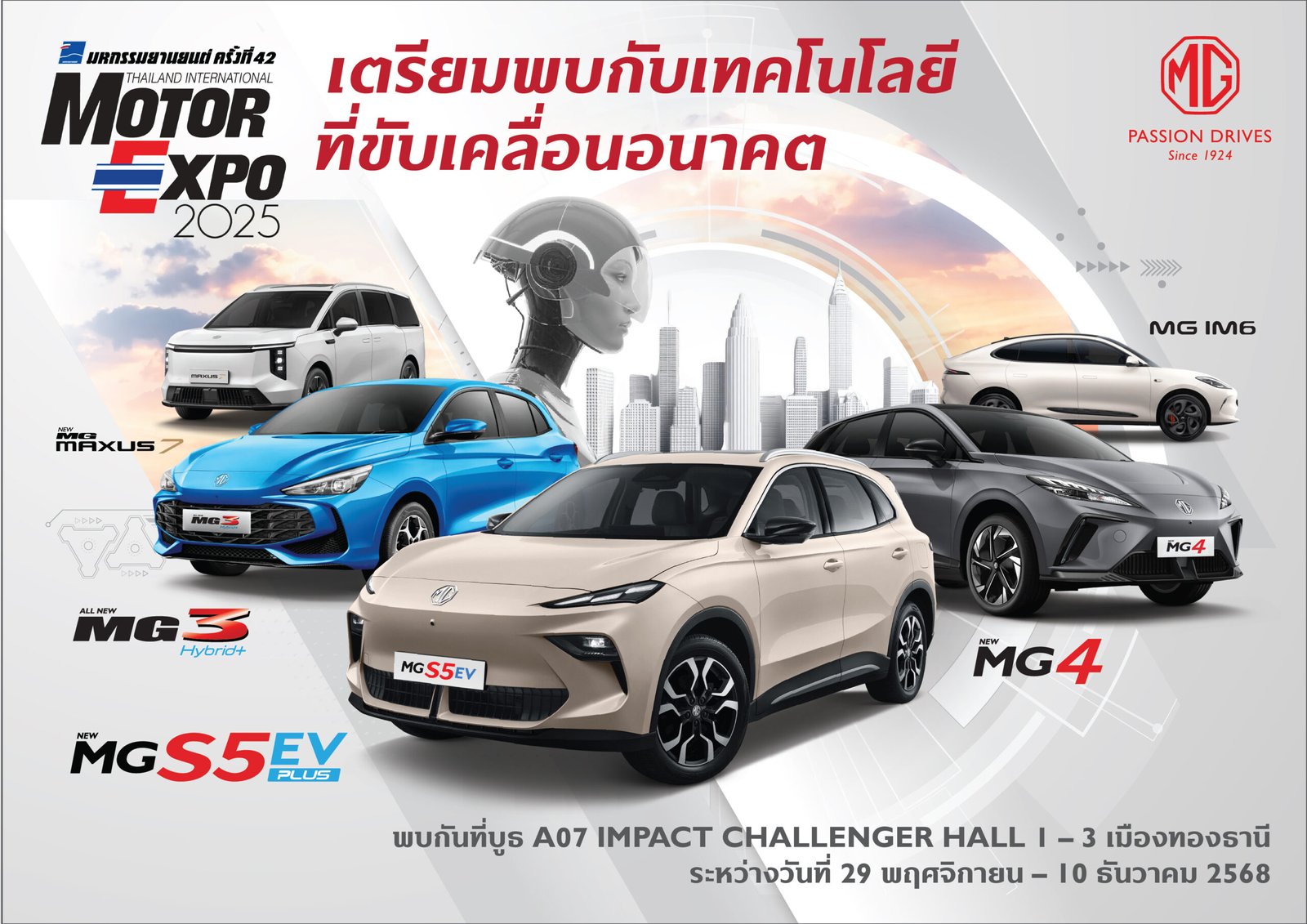บริษัท เอสเอไอซี มอเตอร์ – ซีพี จำกัด และ บริษัท เอ็มจี เซลส์ (ประเทศไทย) จำกัด ผู้ผลิตและผู้จำหน่ายรถยนต์เอ็มจีในประเทศไทย ชูวิสัยทัศน์ GLOCAL Strategy ผสานเทคโนโลยีและองค์ความรู้ระดับโลกมาประยุกต์ให้เข้ากับความต้องการของผู้บริโภคชาวไทย ชูยนตรกรรรมไฮไลท์ NEW MG IM5 รถ Premium Intelligent e-Sedan ที่จะเข้ามาเติมเต็มพอร์ตโฟลิโอในกลุ่มพรีเมียมอีวีต้นปีหน้า และการจัดแสดงกระบะอีวี NEW MG ETERRON 9 ครั้งแรกในภูมิภาคอาเซียน ชูการบริการหลังการขายที่ครบวงจรและมีความพร้อมในทุกมิติ และจุดเด่นที่แตกต่างอย่าง EV LIFETIME WARRANTY รับประกันแบตเตอรี่แรงเคลื่อนสูง ชุดมอเตอร์ขับเคลื่อน และชุดควบคุมมอเตอร์ขับเคลื่อนตลอดอายุการใช้งาน โดยไม่จำกัดระยะทางและผู้ครอบครองรถ พร้อมมอบหลากข้อเสนอพิเศษส่งท้ายปีครบทุกรุ่น เพื่อให้ผู้บริโภคชาวไทยได้เป็นเจ้าของยนตรกรรม เอ็มจี ได้ง่ายและคุ้มค่ากว่าที่เคย