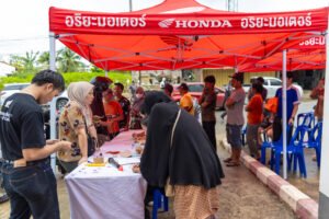 ไทยฮอนด้า ร่วมกับร้านผู้จำหน่ายรถจักรยานยนต์ฮอนด้าทั่วประเทศ เดินหน้าช่วยเหลือผู้ประสบภัยภาคใต้ภายใต้โครงการ “ไทยฮอนด้า ร่วมใจสู้ภัยน้ำท่วมภาคใต้” โดยส่งทีมช่างมืออาชีพ และอาสาสมัครช่างศูนย์บริการฮอนด้าจากทั่วประเทศกว่า 200 คน พร้อมอุปกรณ์ช่างครบชุด บินตรงลงพื้นที่หาดใหญ่เพื่อให้บริการตรวจเช็กและซ่อมรถที่ได้รับผลกระทบจากน้ำท่วมอย่างเร่งด่วน หลังมีประชาชนนำรถเข้ารับบริการมากกว่า 1,000 คัน ภายในวันแรก