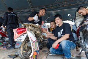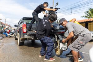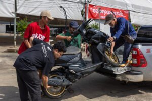 โดยทีมช่างมืออาชีพและอาสาสมัครช่างจากศูนย์บริการฮอนด้าได้เร่งฟื้นฟูรถจักรยานยนต์ทุกคัน ตั้งแต่รถที่ได้รับผลกระทบเล็กน้อยไปจนถึงรถที่เสียหายจนไม่สามารถใช้งานได้ ทีมช่างได้ตรวจสอบระบบสำคัญ ล้างโคลนที่ตกค้างในชิ้นส่วน และเปลี่ยนของเหลวที่ได้รับผลกระทบ เพื่อให้รถกลับมาพร้อมใช้งานอย่างปลอดภัย ทั้งนี้ หากรถที่จมน้ำไม่ได้รับการดูแลอย่างถูกวิธี อาจเกิดปัญหาระยะยาว เช่น ระบบไฟฟ้าลัดวงจร เครื่องยนต์สึกหรอจากความชื้น หรือโคลนอุดตันในระบบต่าง ๆ ซึ่งล้วนเป็นความเสียหายที่จำเป็นต้องได้รับการซ่อมโดยผู้เชี่ยวชาญเท่านั้น