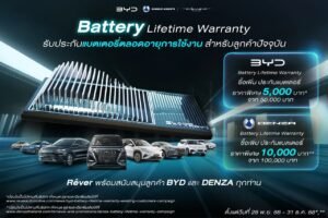 - มั่นใจกับ แพ็คเกจการรับประกันแบตเตอรี่ รวมถึงมอเตอร์ขับเคลื่อน และ ชุดควบคุมมอเตอร์ขับเคลื่อน ตลอดอายุการใช้งาน ในราคาพิเศษเพียง 5,000 บาท สำหรับ บีวายดี และ 10,000 บาท สำหรับ เดนซ่า หมดเขต 31 ธันวาคม 2568 นี้เช่นกัน