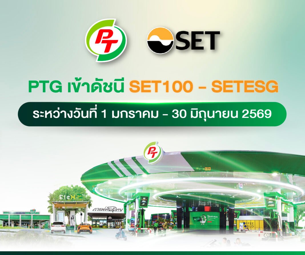 บมจ.พีทีจี เอ็นเนอยี (PTG) ได้รับคัดเลือกเข้าคำนวณดัชนี SET100 และ SETESG ครึ่งแรกปี 2569 มีผลตั้งแต่วันที่ 1 ม.ค.–30 มิ.ย. 2569 ตอกย้ำศักยภาพการเติบโตต่อเนื่อง สภาพคล่องการซื้อขายโดดเด่น พร้อมมาตรฐาน ESG ระดับแนวหน้า สร้างความเชื่อมั่นนักลงทุนสถาบันและต่างชาติ เสริมภาพลักษณ์ผู้นำพลังงานครบวงจร