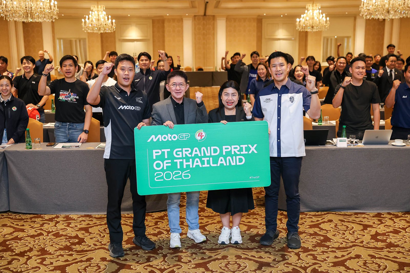 ส่วนในช่วงบ่ายเป็นการประชุมความพร้อมการจัดการแข่งขันรถจักรยานยนต์ทางเรียบชิงแชมป์โลก MotoGP สนามประเทศไทย ฤดูกาล 2026 ภายใต้ชื่อรายการ PT Grand Prix of Thailand 2026 นำโดยตัวแทนจากการกีฬาแห่งประเทศไทย นางโปรดปราน สมานมิตร รองผู้ว่าการการกีฬาแห่งประเทศไทย ฝ่ายกีฬาอาชีพและกีฬามวย ร่วมกับ นายฉลอง ติรไตรภูษิต ผู้อำนวยการฝ่ายสื่อสารองค์กร บริษัท พีทีจี เอ็นเนอยี จำกัด (มหาชน) หรือ PTG ไตเติ้ลสปอนเซอร์พร้อมด้วย นายตนัยศิริ ชาญวิทยารมณ์ กรรมการผู้อำนวยการ สนามช้าง อินเตอร์เนชั่นแนล เซอร์กิต และ นายโชติชนก ชิดชอบ ผู้อำนวยการฝ่ายกิจกรรมต่างประเทศ สนามช้าง อินเตอร์เนชั่นแนล เซอร์กิต จ.บุรีรัมย์