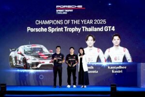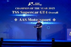 ขณะที่รุ่น TSS Supercar GT4 ของคู่หู “บูม–กันตธีร์ กุศิริ” และ “มิกกี้–คมิก กรรณสูต” กับรถแข่ง Porsche 718 Cayman GT4RS Clubsport หมายเลข 1 ที่ทำผลงานได้อย่างยอดเยี่ยม เก็บคะแนนรวมคว้าถ้วยรองชนะเลิศอันดับ 1 พร้อมพาทีม AAS Motorsport คว้าถ้วย Team Champion of the Year 2025 – Supercar GT4 Overall มาครองได้อย่างภาคภูมิ