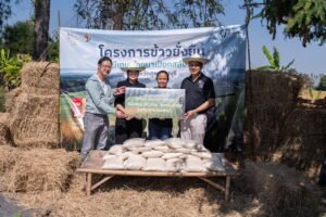 นอกจากนี้ PTG ยังได้เชื่อมโยงมิติด้านสิ่งแวดล้อมสู่สังคม โดยข้าวที่ได้จากโครงการข้าวยั่งยืนฯ จะถูกนำไปมอบเป็นอาหารกลางวันให้กับโรงเรียนในตำบลหนองสะเดา ทั้ง 6 แห่ง เพื่อให้นักเรียนได้รับโภชนาการที่ดีจากข้าวที่เป็นมิตรต่อสิ่งแวดล้อม
