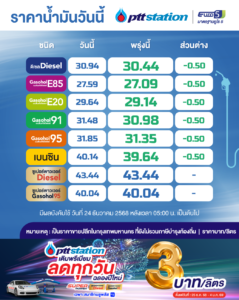 พร้อมมอบของขวัญปีใหม่ ลดราคาน้ำมัน เกรดพรีเมียม สูงสุด 3 บาท/ลิตร มีผลตั้งแต่วันที่ 25 ธันวาคม 2568 เป็นต้นไป