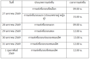 ตารางการแข่งขัน ปริ๊นเซส สิริวัณณวรี ไทยแลนด์ มาสเตอร์ส 2026