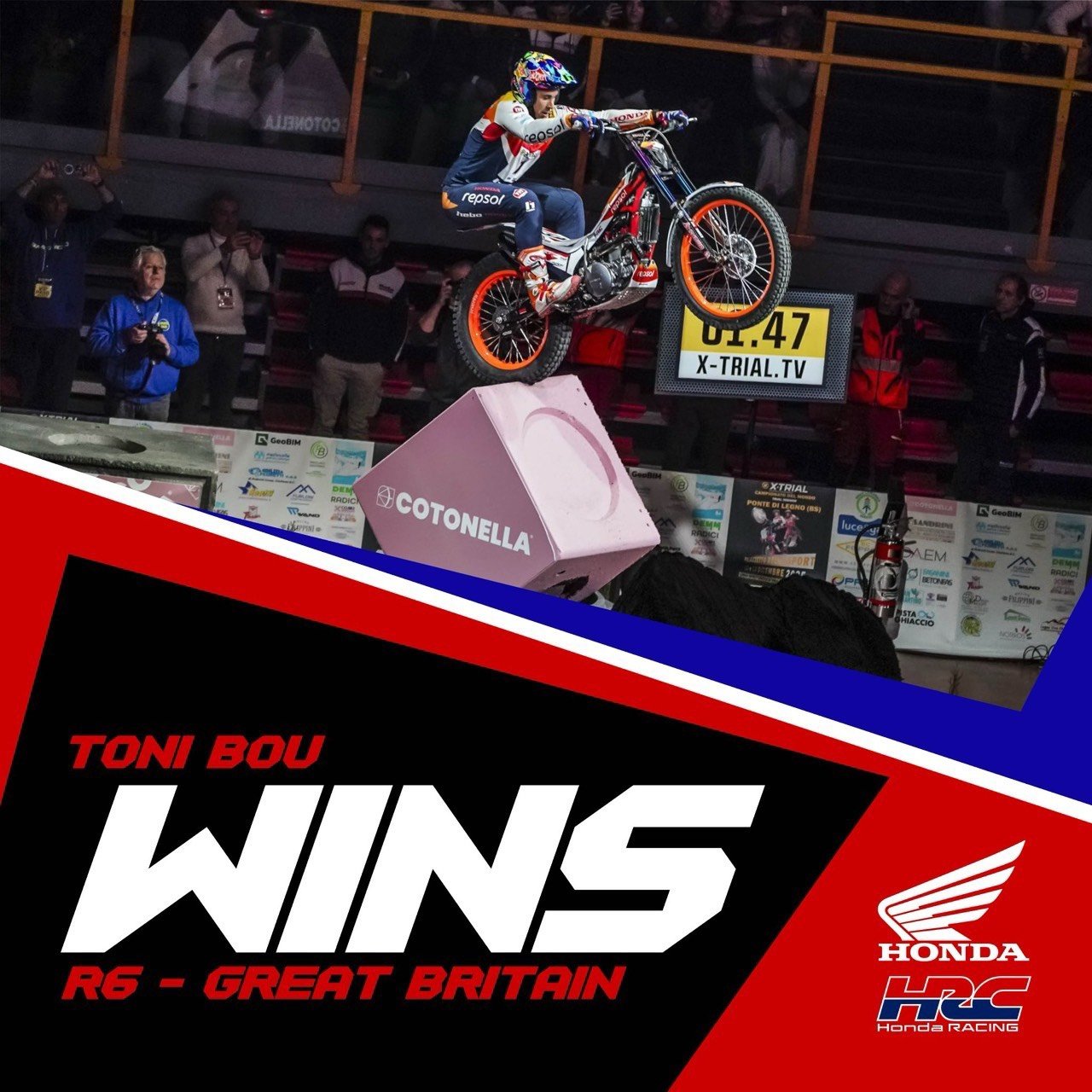 “โทนี่ โบ” ยอดนักขับไต่เขาชาวสเปนจาก Repsol Honda HRC ต่อสู้ในการแข่งขันสุดเข้มข้น แม้ว่าสภาพร่างกายยังไม่เต็มร้อย แต่ใช้ประสบการณ์และความเหนือกว่า เบียดเอาชนะได้สำเร็จ ในการแข่งขันศึก X-Trial World Championship 2026 สนามที่ 6 ที่เมืองลีดส์ ในประเทศอังกฤษ เมื่อวันที่ 24 มกราคม 2569 ที่ผ่านมา พร้อมบวกคะแนนสะสมเพิ่มฉีกช่องว่างในตารางแชมป์เปี้ยนชิพเพื่อลุ้นแชมป์ในฤดูกาลนี้