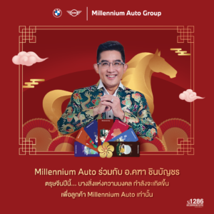 เสริมพลังแห่งโชคลาภ ต้อนรับปีม้าทอง ด้วยบรรยากาศโชว์รูมที่ตกแต่งอย่างประณีตตามศาสตร์มงคลตรุษจีน และยังได้รับเกียรติจาก อาจารย์คฑา ชินบัญชร ร่วมสร้างสรรค์คอนเทนต์มงคลผ่าน Lucky Mobile Wallpaper (ยันต์ดิจิทัลมหามงคล) ออกแบบเฉพาะตามวันเกิดทั้ง 7 วัน ถ่ายทอดแนวคิดเรื่องโชคลาภ ความสำเร็จและการเริ่มต้นปีใหม่อย่างมีพลัง และวิดีโอคอนเทนต์พิเศษ ถ่ายทอดแนวคิดเรื่องโชคลาภ ความสำเร็จ เพื่อมอบเป็นของขวัญแก่ลูกค้า บีเอ็มดับเบิลยู มิลเลนเนียม ออโต้ โดยสามารถติดตามรับชม หรือดาวน์โหลดยันต์ดิจิทัลมหามงคล
