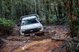 บทพิสูจน์ที่แท้จริงไม่ได้วัดกันที่ชิ้นส่วนต่างๆ แต่ คือโปรแกรมการทดสอบสุดทรหดของฟอร์ด โดยฟอร์ด เรนเจอร์ ซูเปอร์ ดิวตี้ ผ่านการทดสอบออฟโรดที่ ‘นานและโหดกว่าที่เคยมีมา’ ตั้งแต่การวิ่งลุยโคลนด้วยความเร็วสูงซ้ำ ๆ จนมีโคลนพอกติดรถรวมกว่า 600 กิโลกรัม3 ไปจนถึงสถานการณ์ที่จงใจ ‘ใช้งานอย่างหนักหน่วง’4 เพื่อทดสอบให้ฟีเจอร์ระบบช่วยเลี้ยวออฟโรดทำงานถึงขีดสุด รวมถึงการเพิ่มระยะทางบนเส้นทางลูกระนาดขณะบรรทุกหนัก และการทดสอบอื่น ๆ อีกมากมาย ทั้งหมดนี้ถูกออกแบบมาเพื่อพิสูจน์ความแกร่งและความทนทานสูงสุด สำหรับการใช้งานในชีวิตจริงที่มักจะต้องเผชิญหน้ากับเส้นทางออฟโรดตลอดอายุการใช้งาน